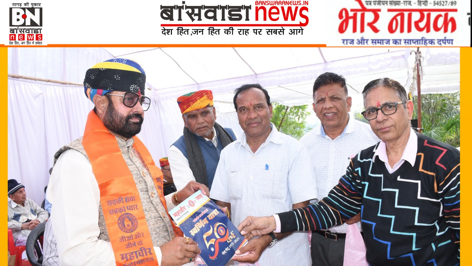 नौगामा सुरेश चंद्र गांधी जिला बांसवाड़ा राजस्थान की रिपोर्ट – सब की सेवा सबको प्यार महावीर इंटरनेशनल शाखा नौगामा द्वारा आज पेंशनर समाज उप शाखा बागीदौरा के सम्मान समारोह में उपस्थित सभी पेंशनरों को मुख्य अतिथि पूर्व कैबिनेट मंत्री महेंद्र सिंह मालवीय प्रधान सुभाष खराड़ी, केशवलाल पाटीदार सरपंच रुक्मणी आर्य बागीदौरा, रविंद्र खराड़ी, पेंशनर समाज अध्यक्ष मनोहरलाल, केशवलाल पाटीदार, कांतिलाल जोशी, बांसवाड़ा डूंगरपुर जॉन के सचिव विनोद दोसी, नौगामा शाखा सचिव कैलाश पंचोली कोषाध्यक्ष अश्विन प्रणामी के सानिध्य में शाखा द्वारा 550 जीवन रक्षक किट वितरण किए गए इस अवसर पर महावीर इंटरनेशनल शाखा अध्यक्ष सुरेश चंद्र गांधी ने बताया कि संपूर्ण भारत वर्ष में अपेक्स कार्यालय से जीवन रक्षक किट वितरण किया जा रहे हैं उसी के तहत आज महावीर इंटरनेशनल शाखा नौगामा द्वारा जीवन रक्षक किट वितरण किया जा रहे हैं इस अवसर पर शाखा के सरक्षक डॉक्टर अजीत गांधी ने बताया कि आजकल हार्ट अटैक के कैश बहुत आ रहे हैं इस हेतु बचाव के लिए यह जीवन रक्षक किट जीवन दायक है जो व्यक्ति को घबराहट हो रही हो पसीना पसीना हो रहा हो बाई और दर्द हो रहा चक्कर आ रहे हो तो यह आभास होता है कि उसे व्यक्ति को अटैक आ रहा है उसे तुरंत यह गोली देने से उसका जीवन अस्पताल पहुंचने तक बच जाएगा जॉन अध्यक्ष विनोद दोसी महावीर इंटरनेशनल के सेवा कार्यों की जानकारी दी , इस अवसर पर महावीर इंटरनेशनल शाखा नौगामा की ओर से उपस्थित अतिथि यो को दुपट्टा उडाकर सम्मान किया गया एवं अपेक्स कार्यालय से प्राप्त 50वीं गोल्डन जुबली का अंक महावीर प्रवाह अतिथियों को भेंट किया गया इस अवसर पर कांतिलाल जी जोशी ने कहा कि महावीर इंटरनेशनल द्वारा बहुत सराहनीय व पुण्य का कार्य कार्य किया जा रहे हैं हमारी ओर से उन्हें बहुत-बहुत शुभकामनाएं इस प्रकार की शुभ कार्य करते रहे इस अवसर पर महावीर इंटरनेशनल शाखा नौगामा के वीर सदस्य जगजी कटारा, ताजेग पाटीदार, उत्सव गांधी, भूपेंद्र दवे , सुरेश चंद्र व्यास, महावीर इंटरनेशनल शाखा बड़ोदिया के सचिव जयंतीलाल जैन नै अपना सहयोग प्रदान किया इस अवसर पर धीरज दोसी द्वारा 1100, इरफान भाई की ओर से 2200, राजेश पिंडारमियां द्वारा 1100, अपनी ओर से जीवन रक्षक किट बांटवाने हेतु स्वीकृति प्रदान की