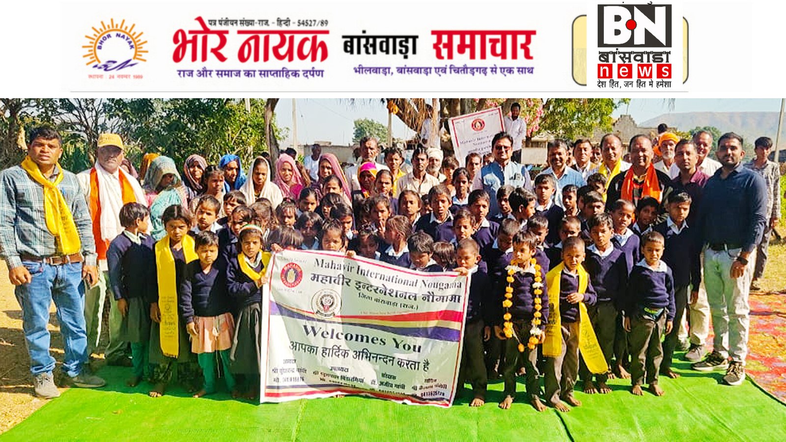 महावीर इंटरनेशनल शाखा नौगामा जिला बांसवाड़ा राजस्थान द्वारा आज आज राजकीय प्राथमिक विद्यालय लक्ष्मणपुर ब्लॉक शिक्षक कार्यालय कुशलगढ़ के अंतर्गत मुख्य अतिथि ci महिपाल सिंह महावीर इंटरनेशनल शाखा नौगामा के अध्यक्ष सुरेश चंद्र गांधी प्रधानाचार्य भीम सुरावत पत्रकार ललित गोलेक्षा महावीर इंटरनेशनल कुशलगढ़ के अध्यक्ष कोमल जैन, रितेश दोसी सचिव po साबू रावत उप, सरपंच तगु डामोर, शाखा के वीर सदस्य जगजी कटारा मुकेश दोसी, शाखा सचिव कैलाश पंचोरी, के सानिध्य में विद्यालय के 70 छात्रों को स्वेटर वितरण किए गए इस अवसर पर सभी अतिथियों को फूल माला पहनाकर तिलक लगाकर महावीर इंटरनेशनल का दुपट्टा उड़ा कर सभी का स्वागत अभिनंदन किया गया इस अवसर पर महिपाल सिंह ने कहा कि महावीर इंटरनेशनल द्वारा इस प्रकार की सेवा प्रकल्प किए जा रहे हैं बहुत सराहनीय है उनके सेवा कार्यों की में सराहना करता हूं प्रधानाचार्य भीमजी सुरावत कई महावीर इंटरनेशनल द्वारा हमारे ब्लॉक कुशलगढ़ में निर्धन छात्रों को स्वेटर वितरण कर श्रेष्ठ कार्य किया है हमारी ओर से उन्हें बहुत-बहुत शुभकामनाएं कहा , po सबू रावत ने महावीर इंटरनेशनल के कार्यों की सराहन करते हुए कहा कि उनकी सेवा कार्यों को नमन करते हैं इस अवसर पर महावीर इंटरनेशनल शाखा द्वारा उपस्थित सभी ग्रामीण बधुओ को एवं अतिथियों को जीवन रक्षक किट बाटकर इनका महत्व बताया एवं अपेक्स कार्यालय से प्राप्त महावीर प्रवाह का अंक अतिथियों को भेंट किया गया इस अवसर पर विद्यालय के स्टाफ कपिल बुनकर, कमलेश आदि ने अपना सहयोग प्रदान किया कार्यक्रम का संचालन मुकेश दोसी बड़ौदिया द्वारा किया गया आभार की रस्म विद्यालय प्रधानाध्यापक महेंद्र कुमार द्वारा की गई